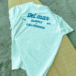 Crafted from heavyweight cotton, the Heritage Tee boasts timeless durability and a comfortable fit. Our classic tee pays homage to Del-Mar's roots in surf culture. Pre-shrunk to maintain its shape, hang dry to avoid further shrinking.